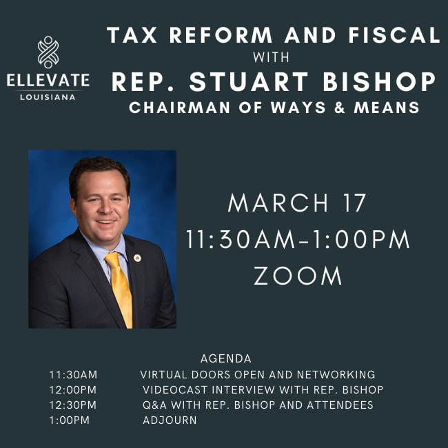 Join Ellevate Louisiana as we discuss tax reform and fiscal issues with Rep. Stuart Bishop, Chairman of Ways and Means.